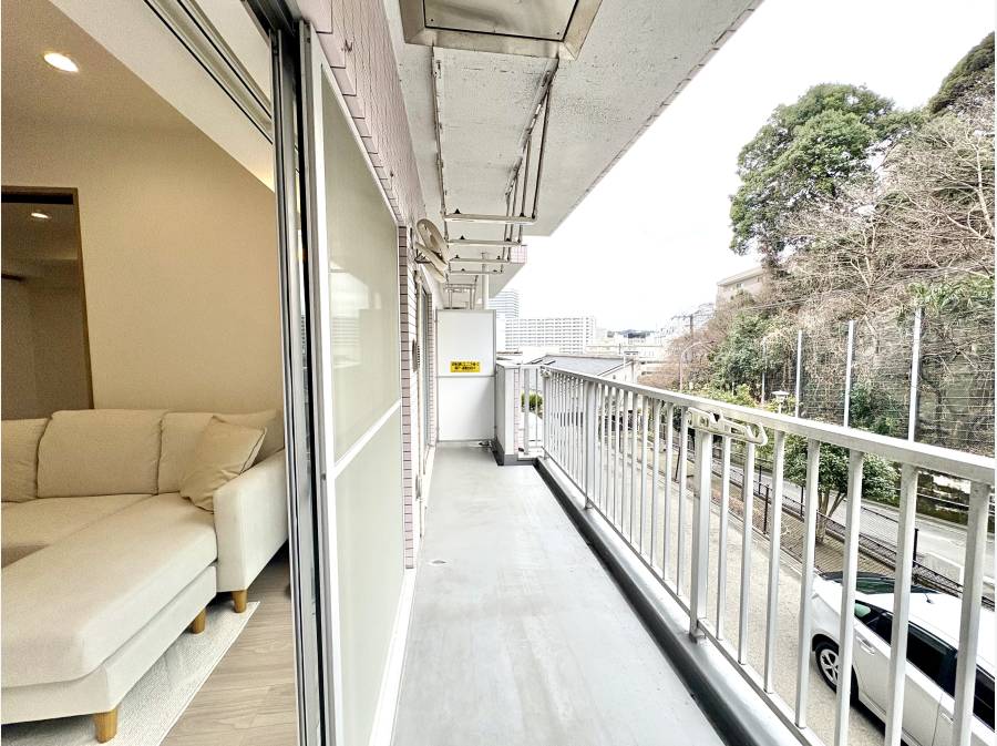バルコニーからは隣接する公園の緑を望むことができ、都会の利便と豊かな自然を同に享受できるロケーションです。