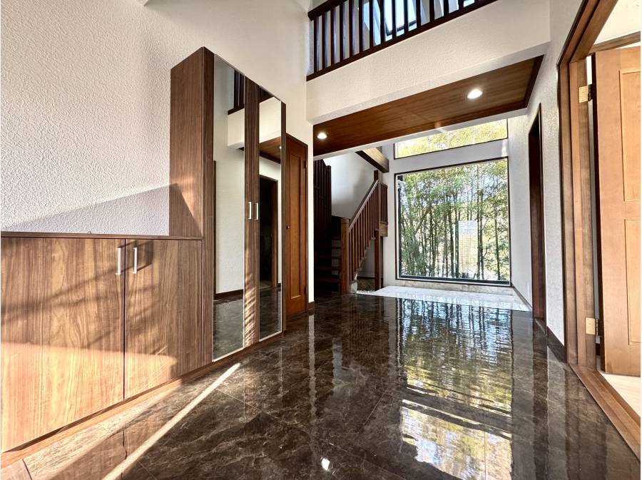 裏手には竹林風景が広がり和の趣も感じられる住まい