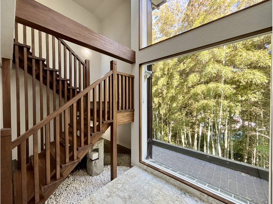鎌倉の落ち着いた住環境に佇む本物件は、日常の延長に特別な時間が流れる、ゆとりある邸宅です。敷地の広さを生かしたゆったりとした建物配置により、周囲の視線を程よく遮りながらも、光と風をたっぷりと室内に取り組む設計となっています。