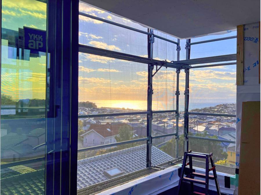目の前のお家は下がっているため、抜け感があり、海を眺め静かな時間を感じながら読書や朝食を楽しむのも良いですね。