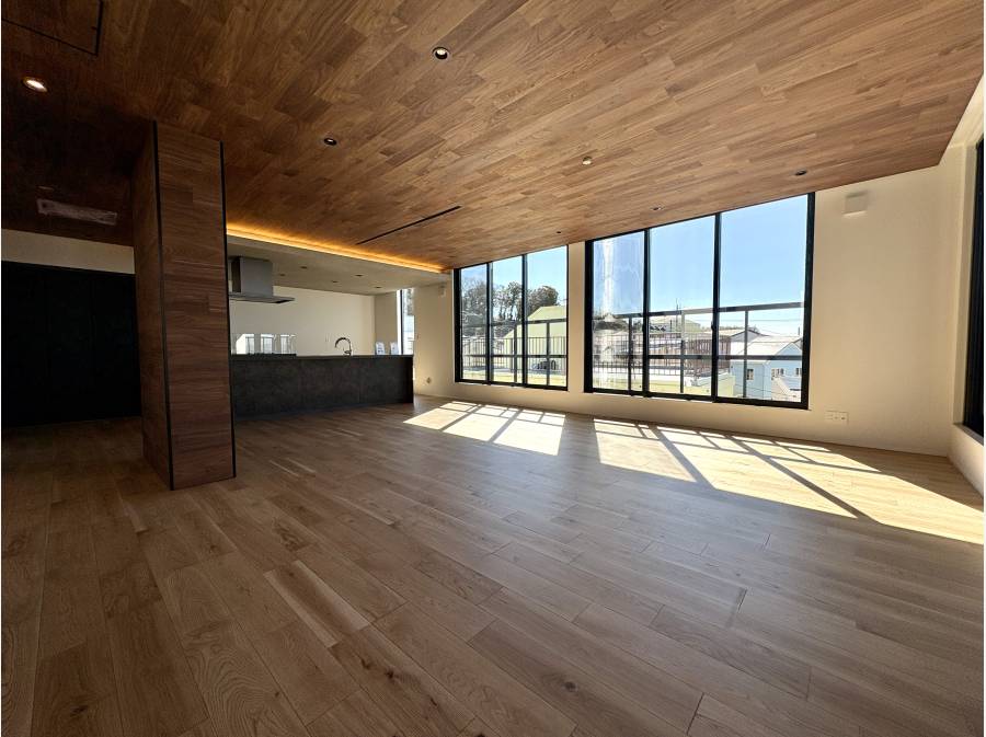 約30帖のLDKは、天井高と開口部の設計により、開放感と落ち着きが共存する空間に仕上がっています。