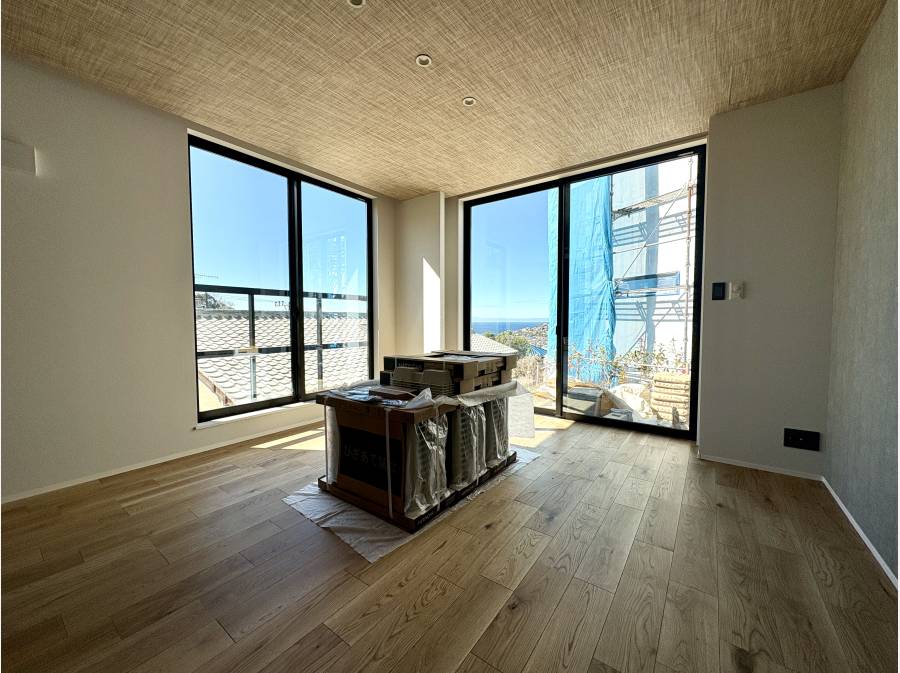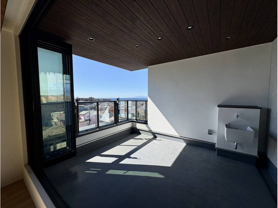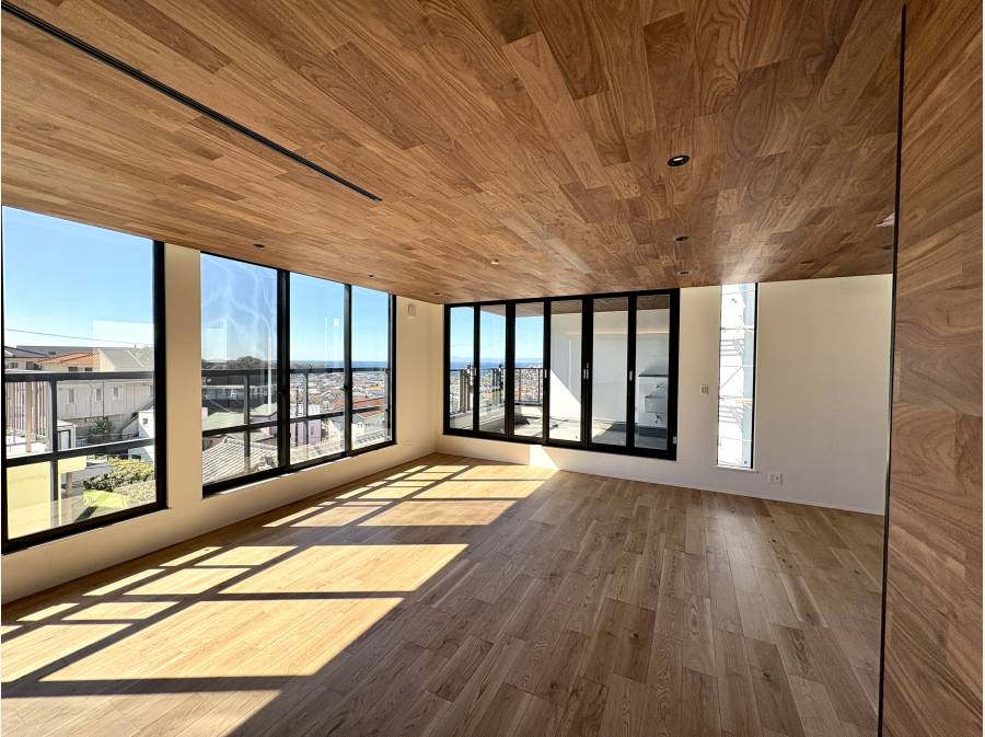 七里ガ浜の街並みと大きくひらける海を望む約30帖のLDK