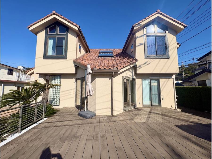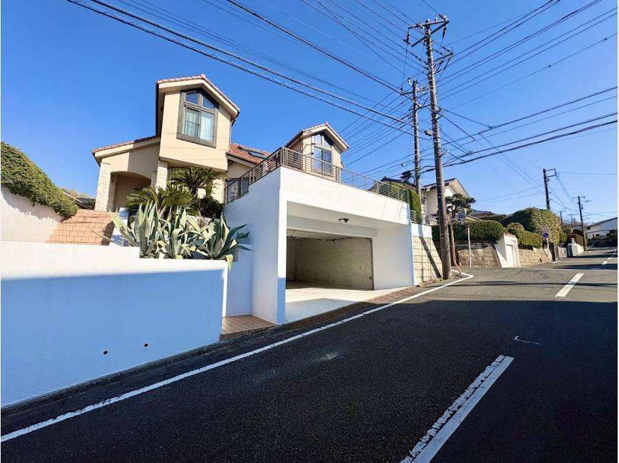 七里ヶ浜の穏やかな住宅街、開放感あふれる南東角地に佇む200㎡の大型邸宅です。