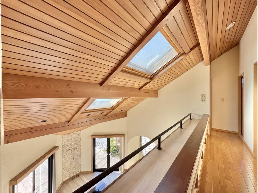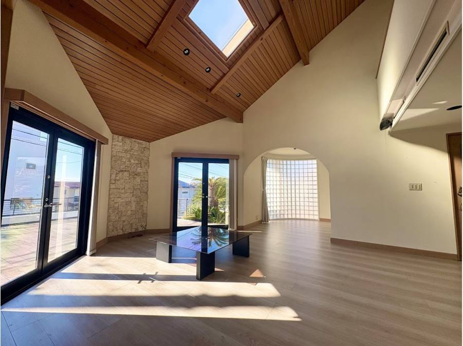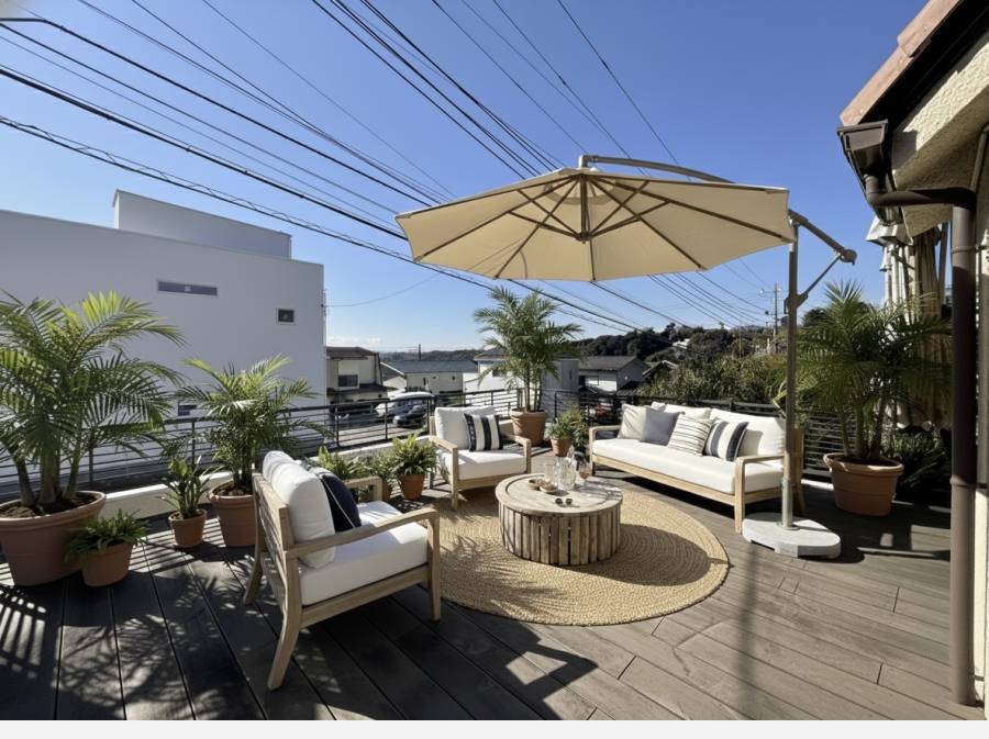 トップライトから陽光が降り注ぐ吹き抜けのリビングや、海風を感じる広々としたウッドバルコニーが、日常をリゾートへと変えてくれます。