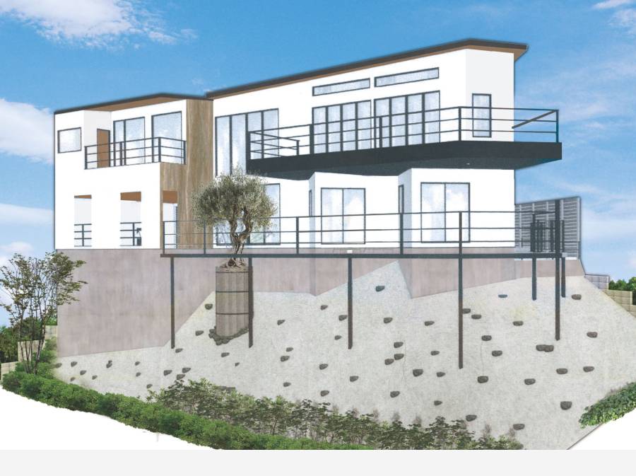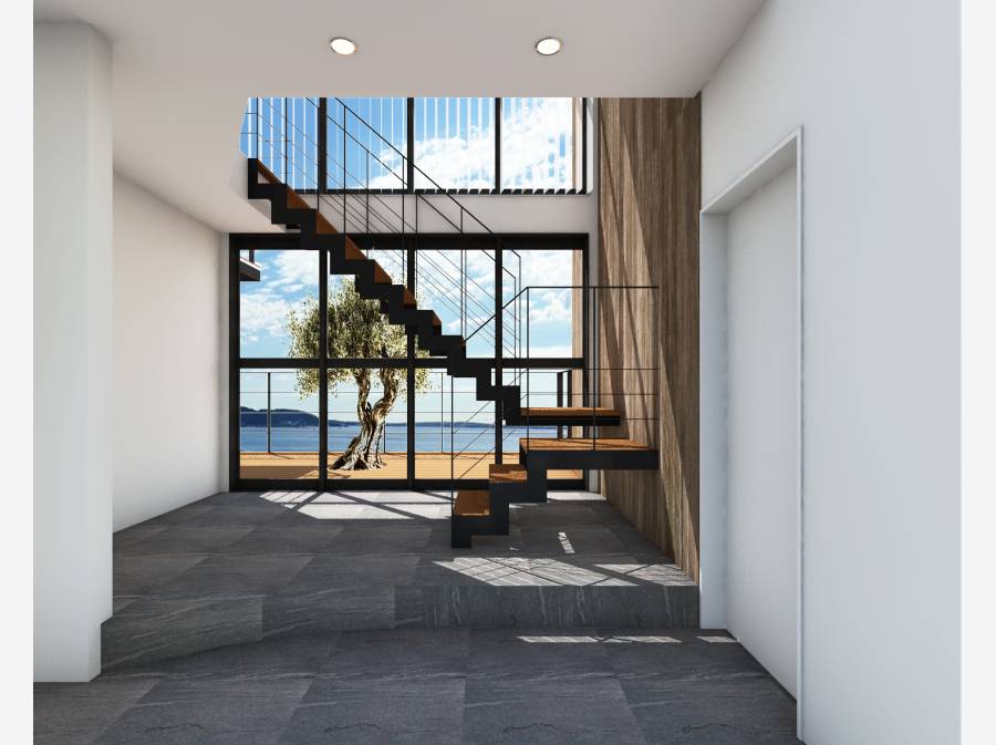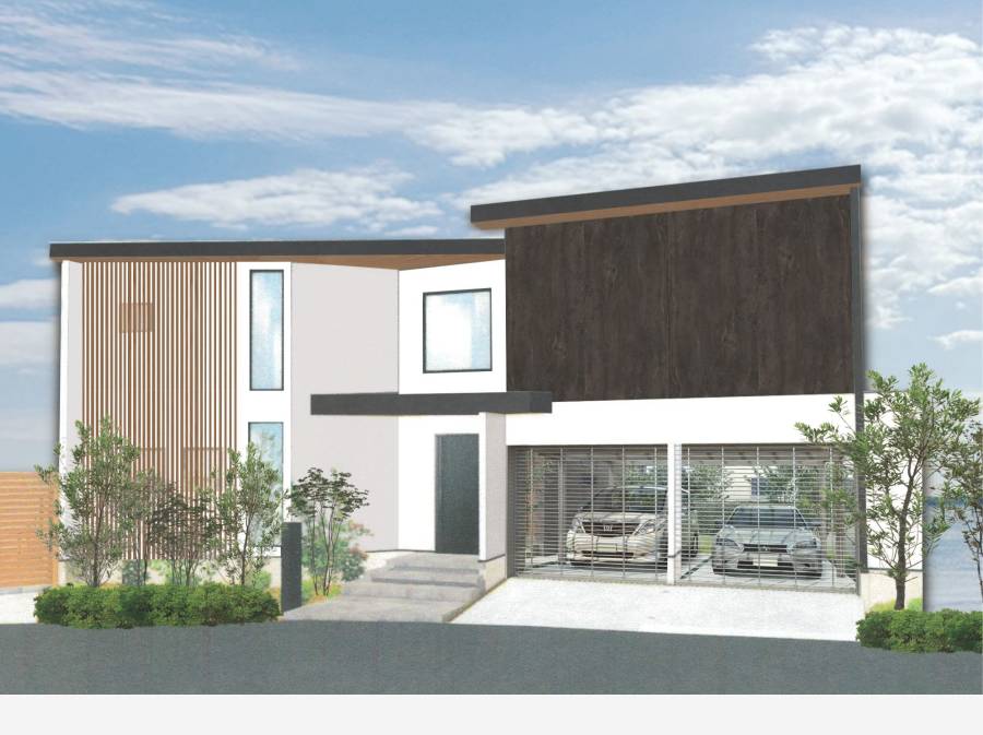 水平ラインと縦リブが光風邪を導き自然と調和する上質モダン邸宅(パース)
