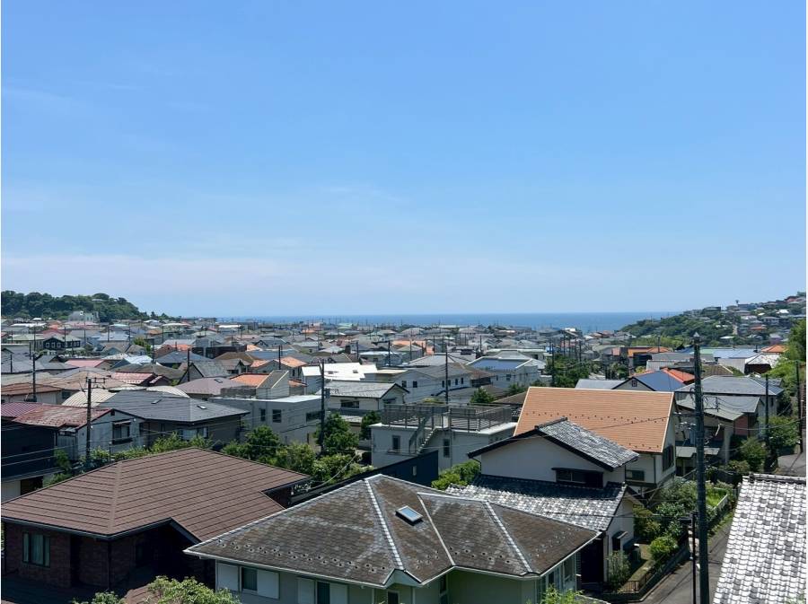 東南西方向にひな壇計上でございますため、日当たり眺望は良好です。海側に向かい、前面建物が低く、海まで続く開放感をお楽しみいただけます。