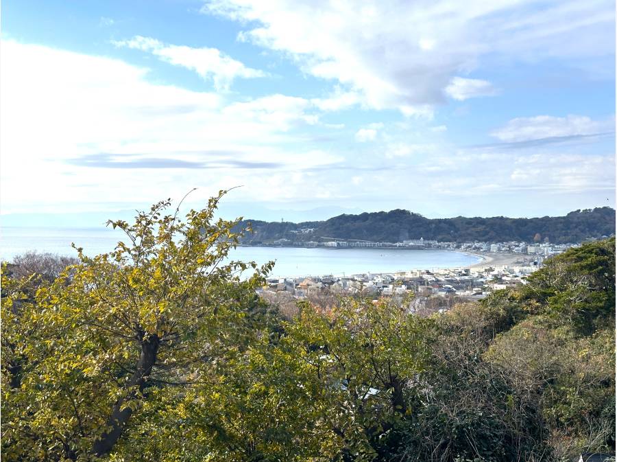 目の前には材木座海岸、そして天気が良ければ雄大な富士を望む眺望