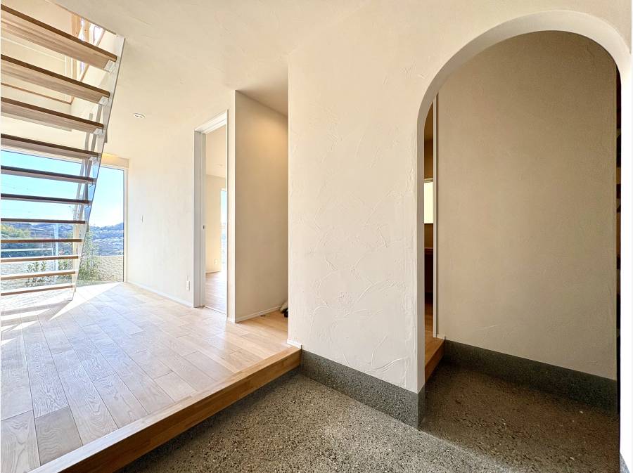 最大の特長は、建物全体に使用されたこだわりの自然素材と抜けた眺望です。