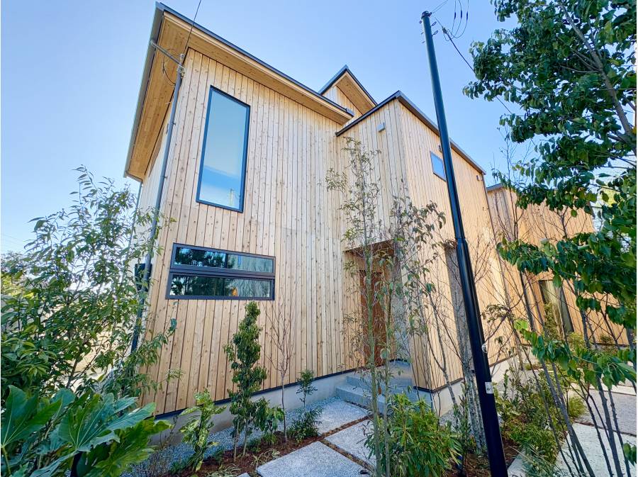 外装には耐久性に優れた屋久島地杉を贅沢に使用し、木の温もりに包まれる上質な住空間を演出しています 。