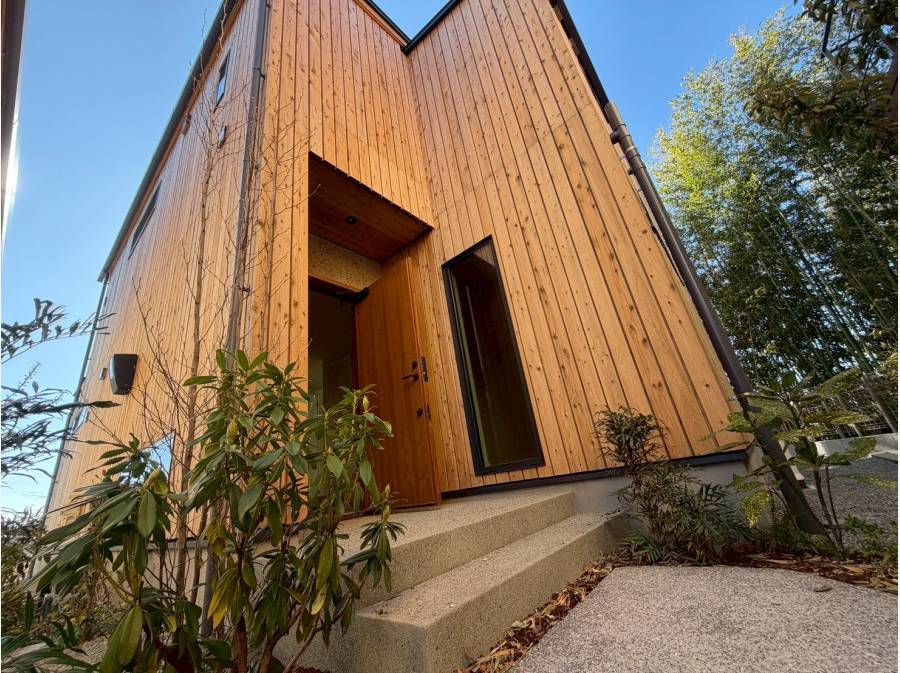 木目を活かした外観のこちらのお家、、家に帰るたびにほっと気持ちが緩むような柔らかな外装となっております。