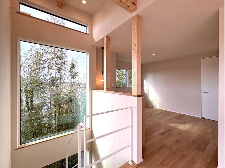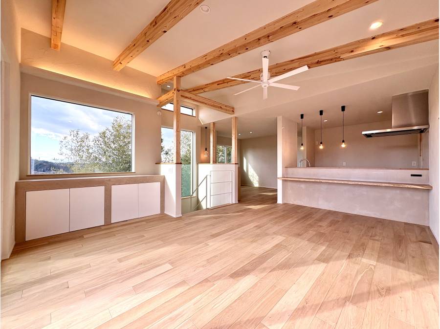 最大の特長は、建物全体に使用されたこだわりの自然素材と抜けた眺望です。