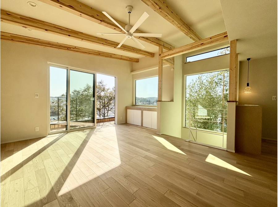 C号棟は、日々の暮らしやすさと、住む人の心地よさを丁寧に考えて設計された住まいです。室内は光の入り方や風の抜けを意識した配置となっており、朝から夕方まで自然光を感じながら過ごせる空間が広がります。