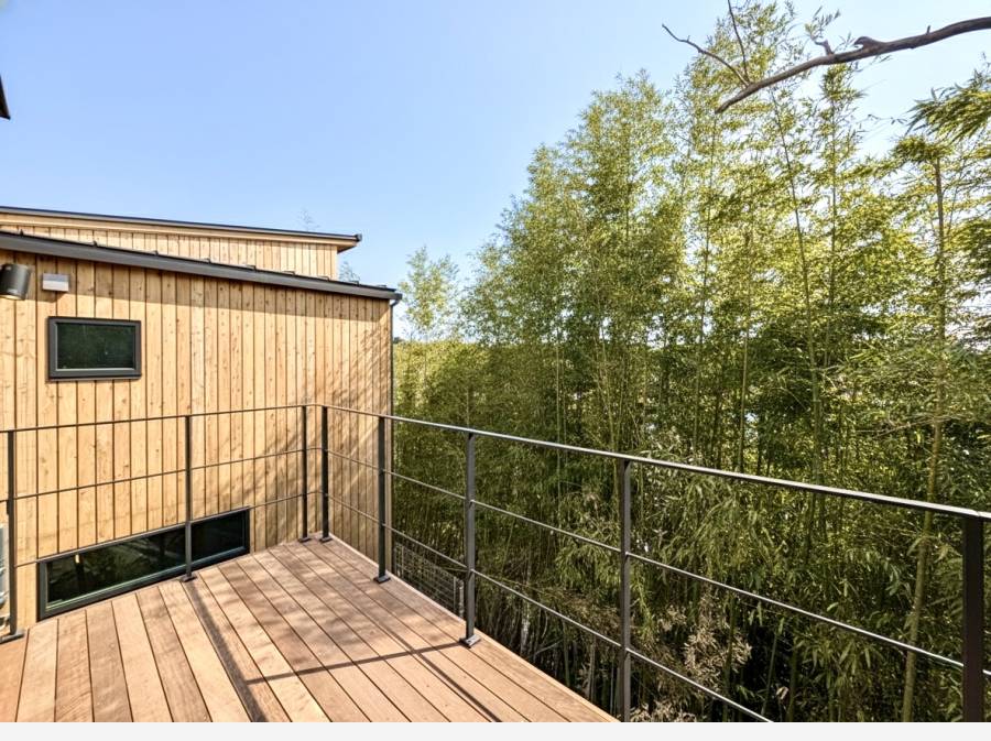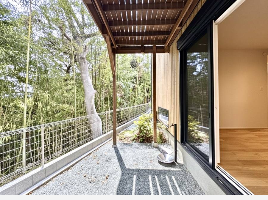 こちらの号棟はリビングからつながるウッドデッキで竹林を眺める外空間がポイント