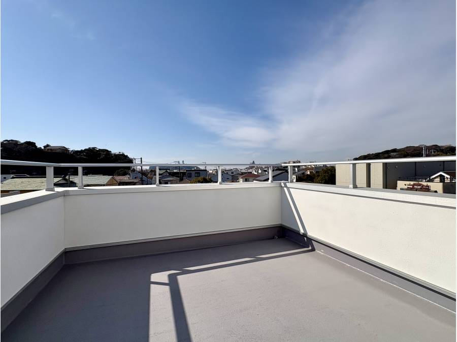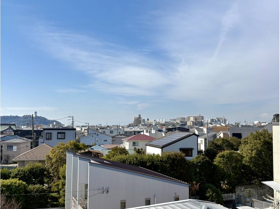 本物件最大の魅力は、約6.5畳の広々としたルーフバルコニーから望む江の島のパノラマビューです。