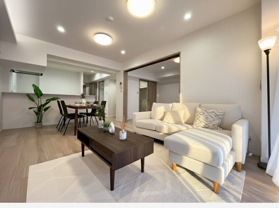 | その他要件 | 令和7年12月リフォーム済み:システムキッチン新規交換(食洗器・浄水器付き)、ユニットバス新規交換(浴室暖房乾燥機・追炊機能付き)、フローリング新規貼替、壁・天井クロス新規貼替、建具。収納等新規交換、給湯器新規交換、洗面化粧台新規交換、ダウンライト新規交換、間取り変更、網戸張替え、分電盤交換、スイッチカバー等交換 | ||