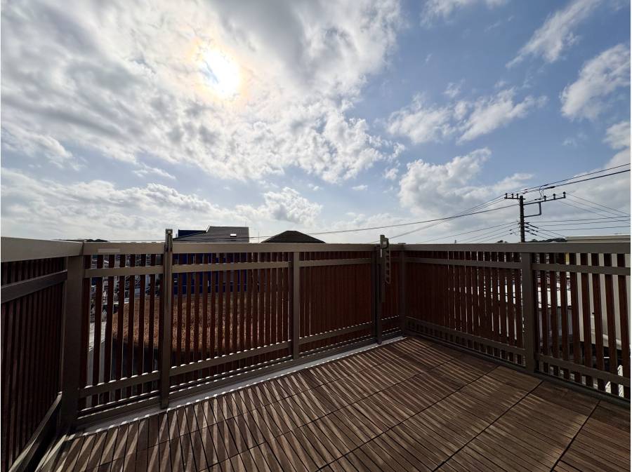 屋外には、家族で寛げるウッドデッキや、パノラマビューを独り占めできるスカイバルコニーを完備。
