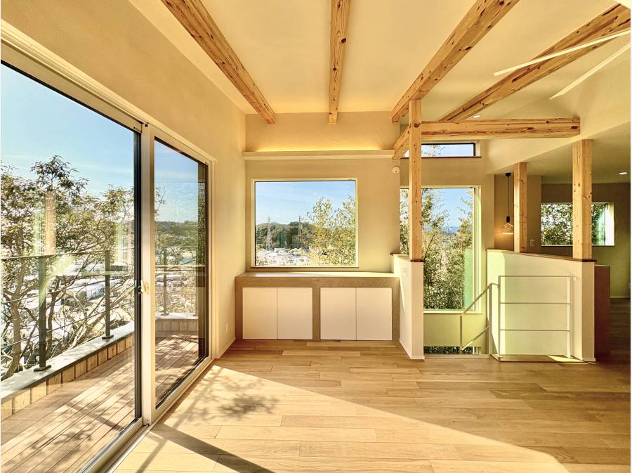写真の通り、室内外はおしゃれでスタイリッシュなデザインです。リビングから広がる鎌倉の景色も魅力です。