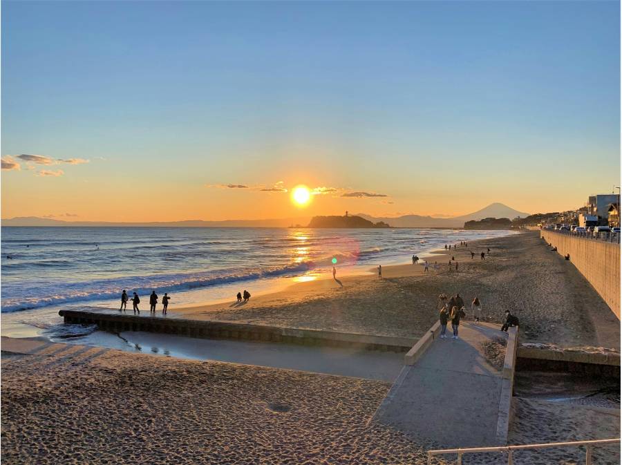 七里ガ浜までは徒歩7分、朝の散歩や夕暮れのサンセットが日常になる距離感です。