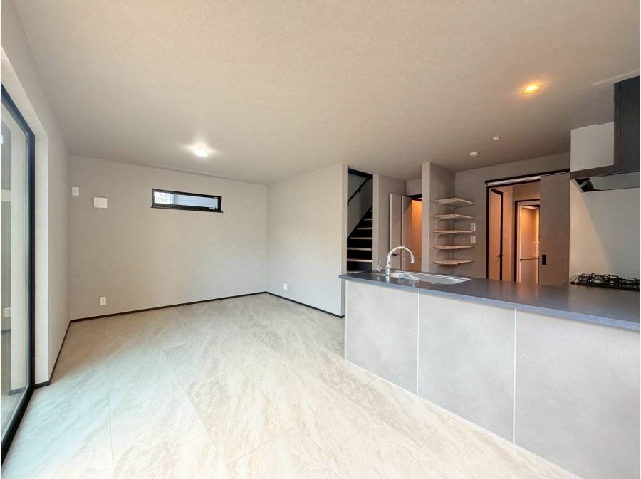 すっきりと洗練された空間が広がり、広々としたL字型のシステムキッチンや背面の造作棚、全居室のクローゼットなどなど暮らしやすさもばっちりです。