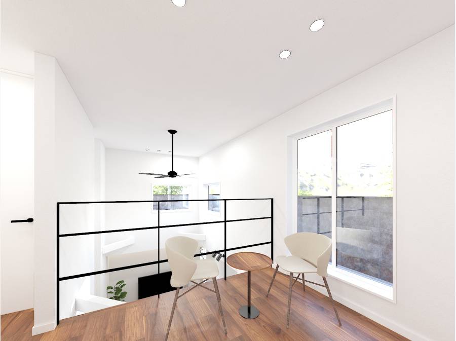 さらに、吹き抜けに面したセカンドリビング(プライベートリビング)は、書斎や趣味の空間として、家族の気配を感じながらも自分だけの時間を愉しむ贅沢を叶えます。