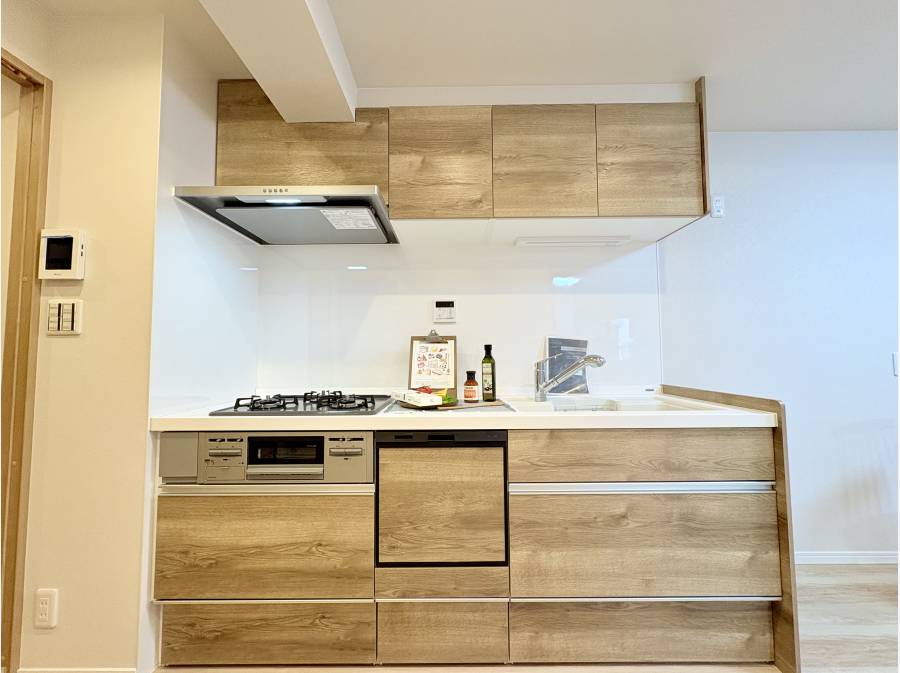 LDKは14.6帖リビングとダイニングまったりとくつろげる空間が広がります。キッチンはシステムキッチンに新規交換。食洗機付きで家事の手間を和らげてくれます。