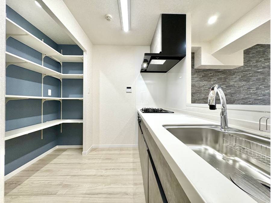令和7年11月に完了したリノベーションでは、タッチレス水栓付の最新型システムキッチンへの交換に加え、大容量のパントリーを新設し、共働き世帯にも嬉しい高い機能性を実現しました。