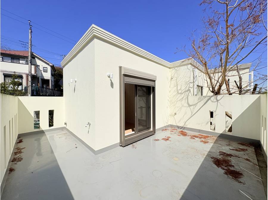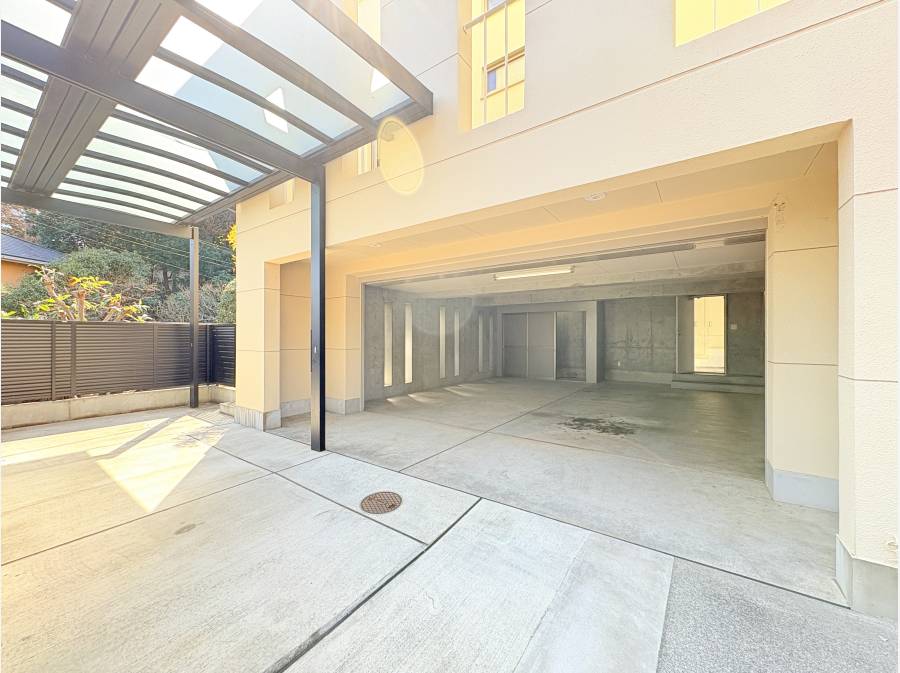 電動シャッター付きのガレージや、南向きで広々としたルーフバルコニーを完備。間取りは3LDKでゆとりのある造りです。