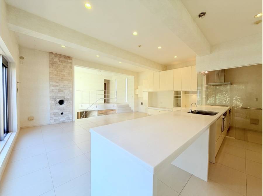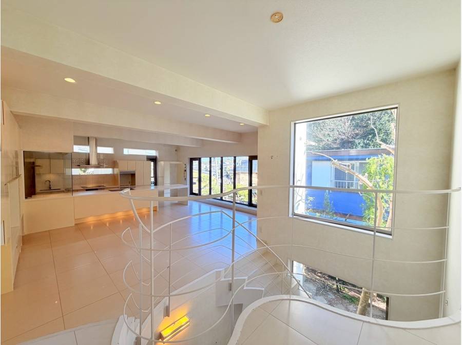 素敵な曲線美の階段を上がった先に広がる約30帖のLDKは家族や友人が集まる優雅なひと時