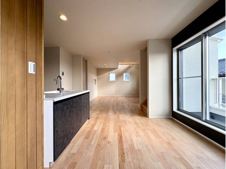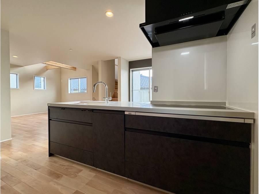 設備面も妥協なく、約9人分を予洗い不要で洗えるフロントオープン食洗機や、3連IHワイドキッチン、アプリ操作可能な電動シャッターなどを完備。