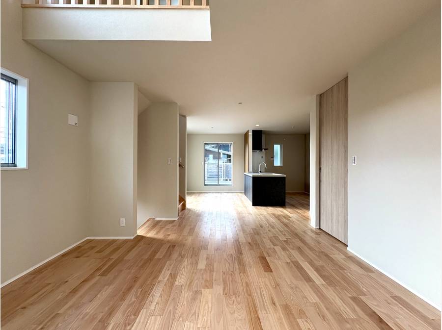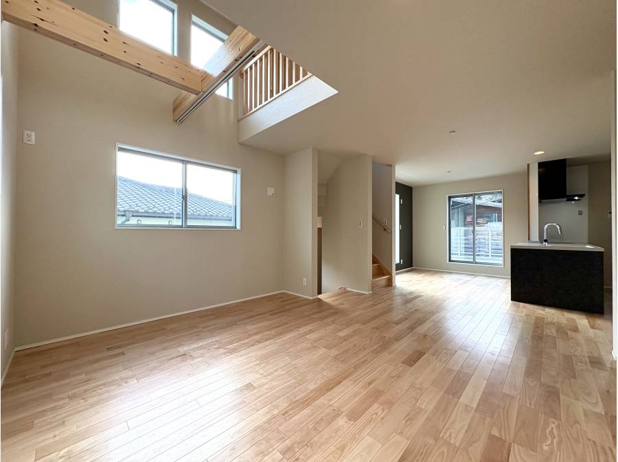2階には、吹抜天井が開放感を演出する20帖超のLDKを配置。