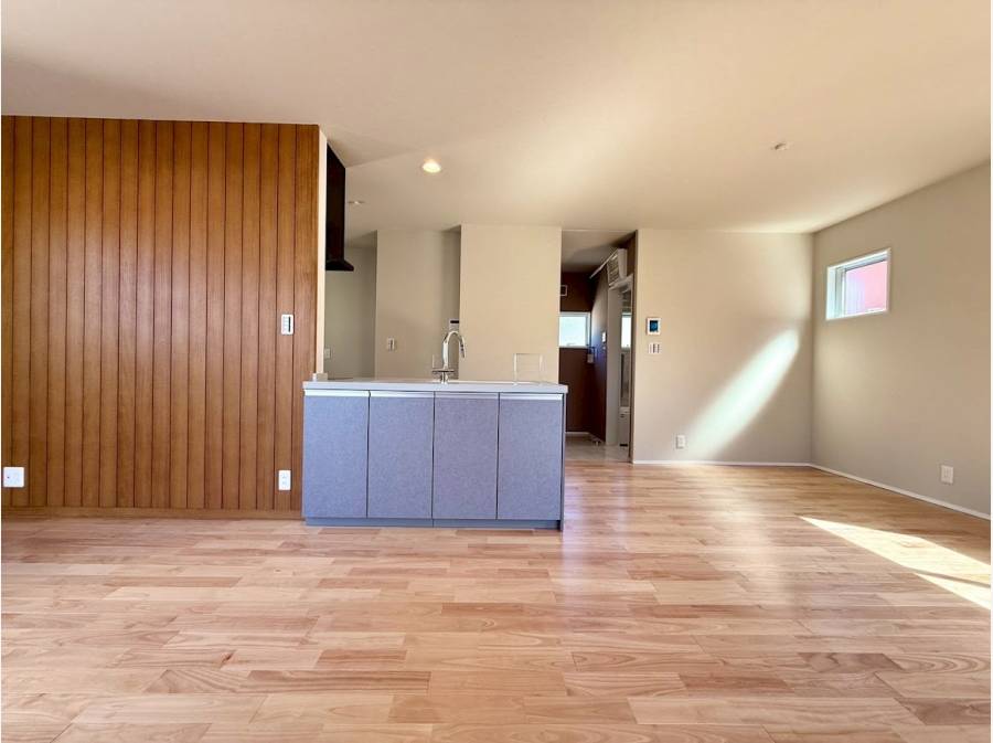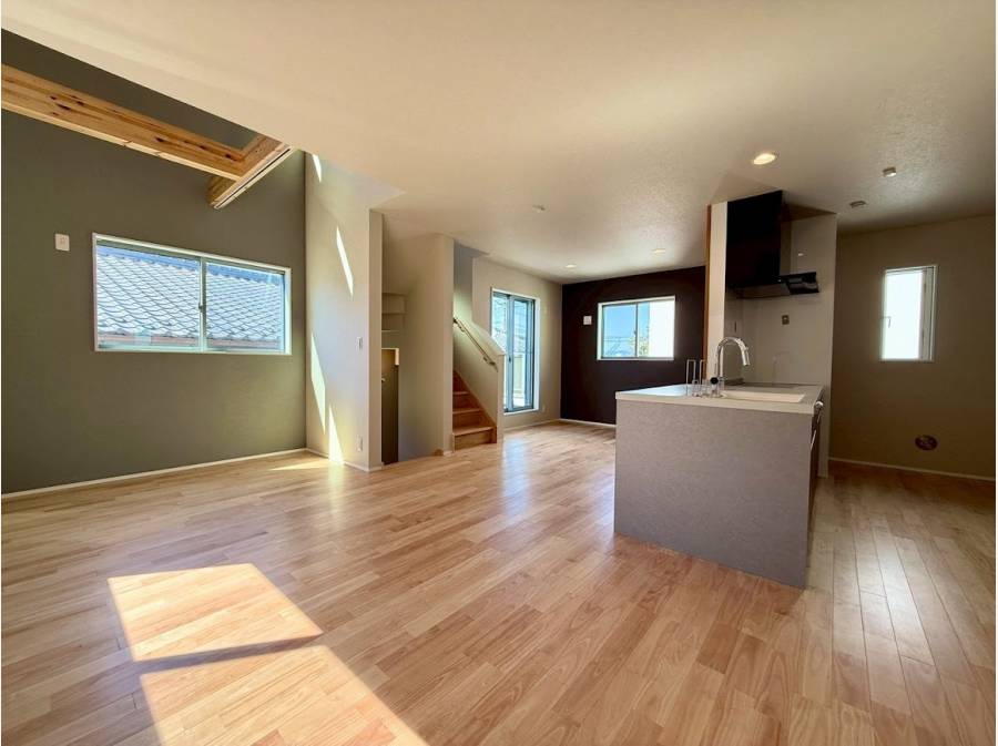 20.3帖の広々としたLDKには、木の温もりと湘南の光が心地よく調和します。