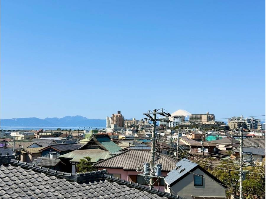 特筆すべきは、そのロケーションです。ルーフバルコニーに立てば、相模湾・江ノ島・富士山を一度に見渡すパノラマビューが広がります。