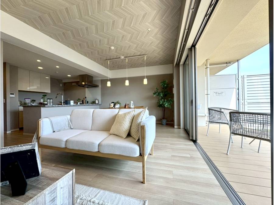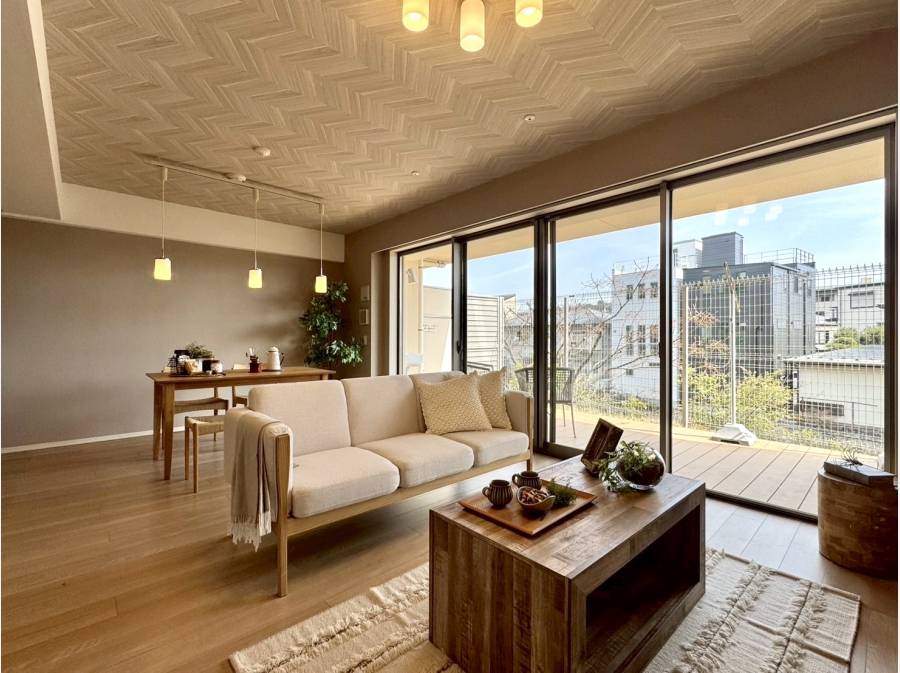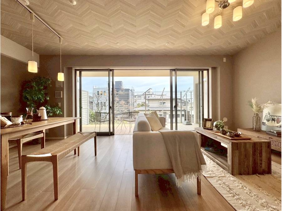 LD部分には足元から温める床暖房を完備し、窓の外にはくつろぎのウッドテラスが広がります。