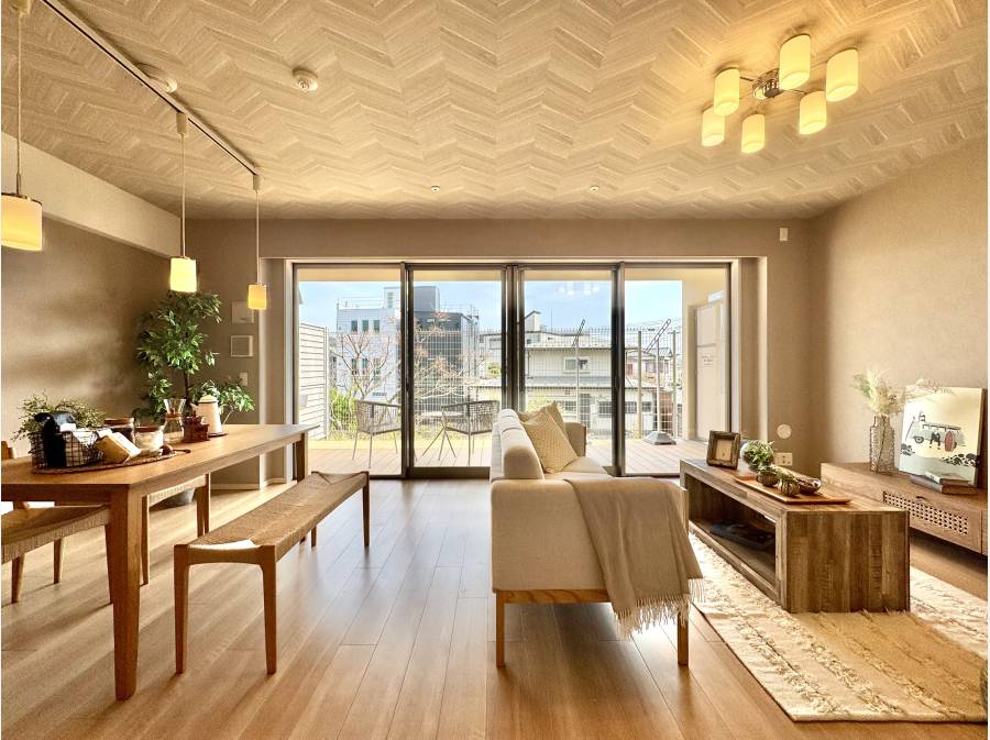 室内からそのままつながるウッドテラス。