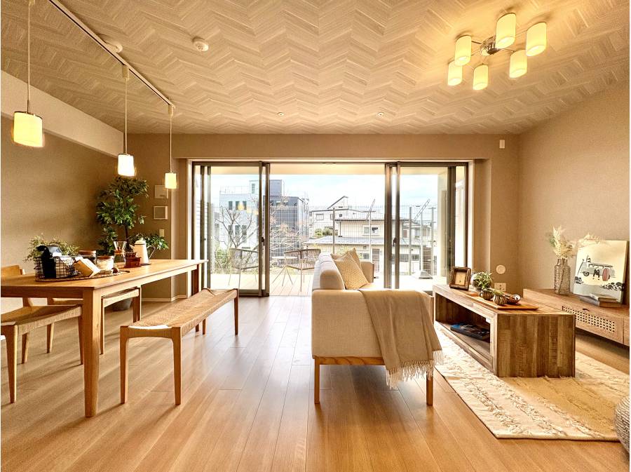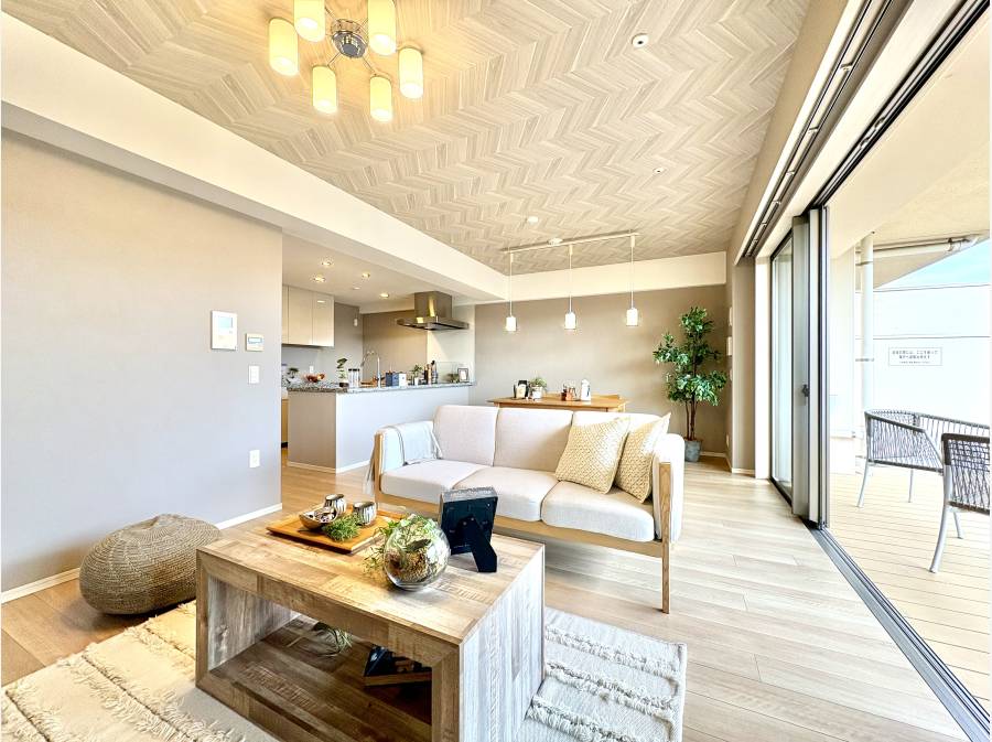 LD部分には足元から温める床暖房を完備し、窓の外にはくつろぎのウッドテラスが広がります。