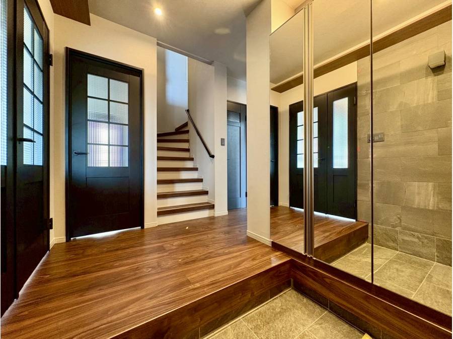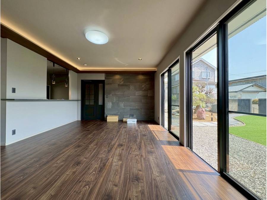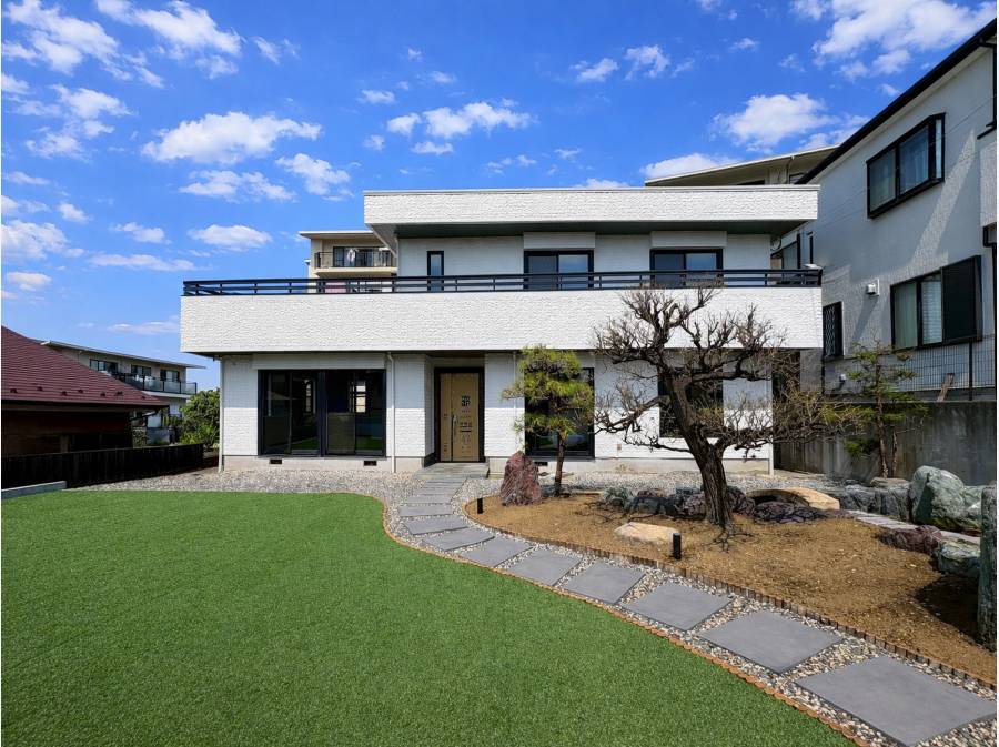 積水ハウス旧施工による確かな品質に、フルリノベーションで新たな価値を吹き込んだ一邸。約145坪のゆとりある敷地には、カースペース4台分を確保し、日常の利便性と来客時の安心感を兼ね備えています。