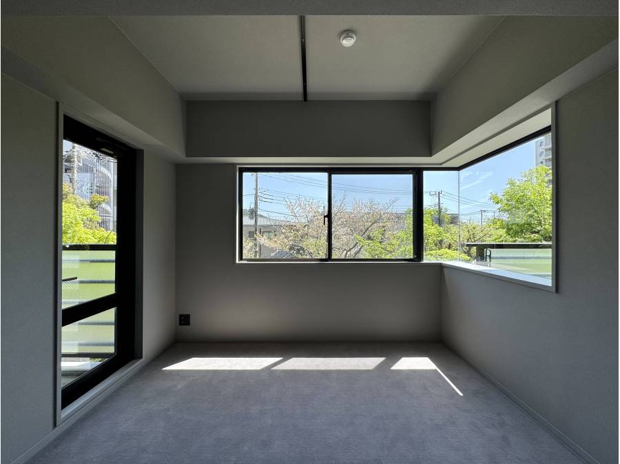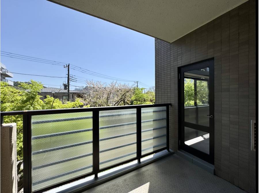 二面バルコニー×南向きにつき陽当り・風通しも良好。さらに24時間警備員在住という安心感も魅力です。