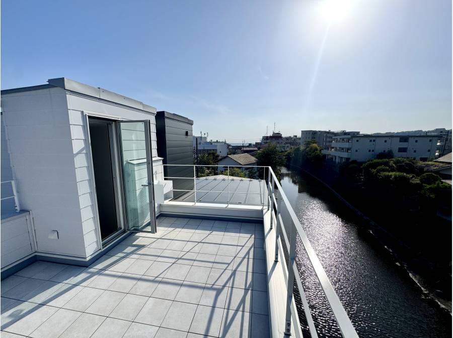 ルーフバルコニーに広がる青い海と空。鎌倉材木座で、四季の移ろいを五感で愉しむ暮らし。