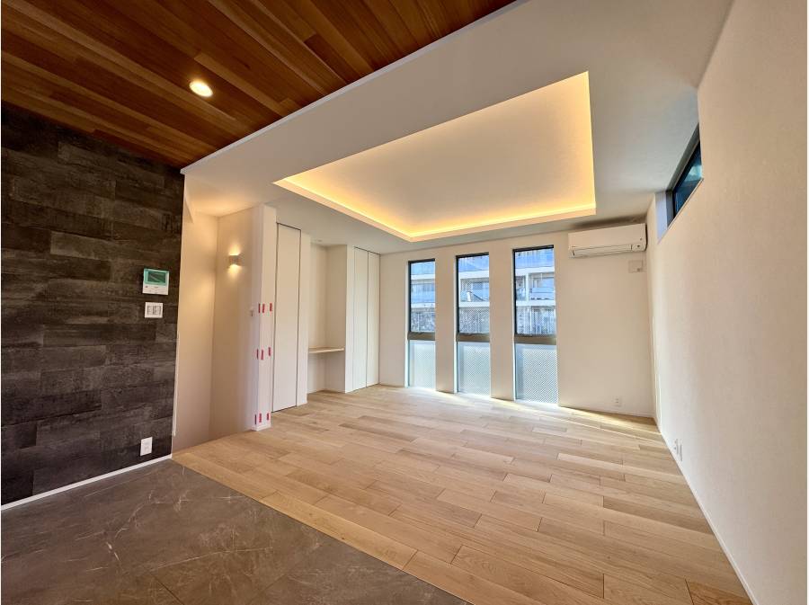 3階の居室には桜の無垢材を採用し、歩くたびに温もりを感じる設計に。