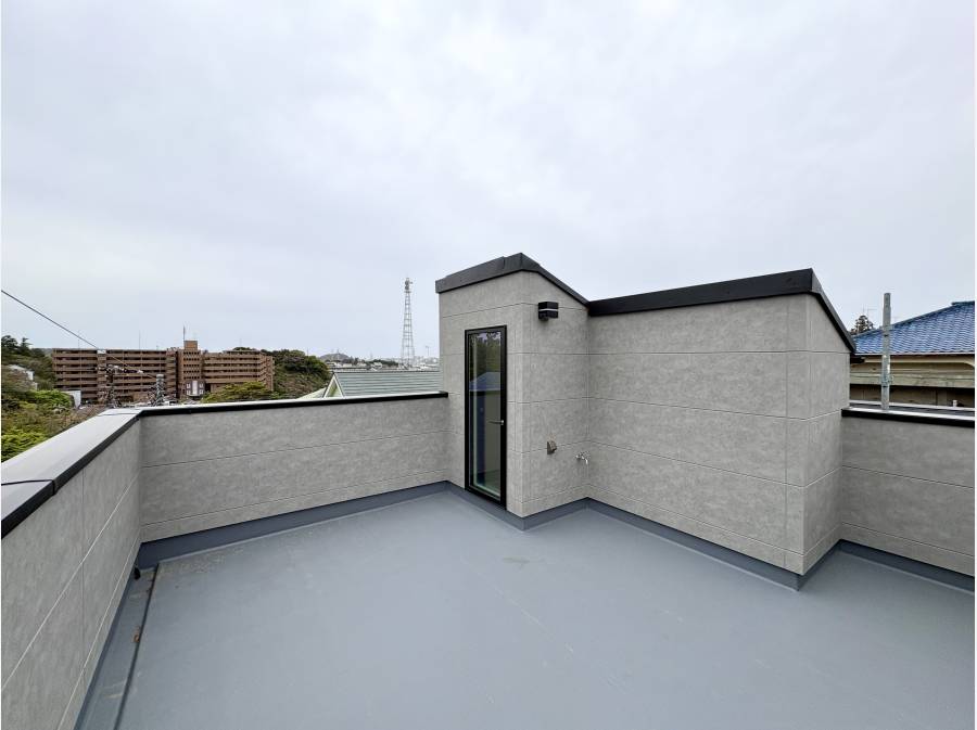 大船駅徒歩圏、10.6帖のルーフバルコニーが広げる開放感。広々LDKとビルトインガレージの新築邸宅