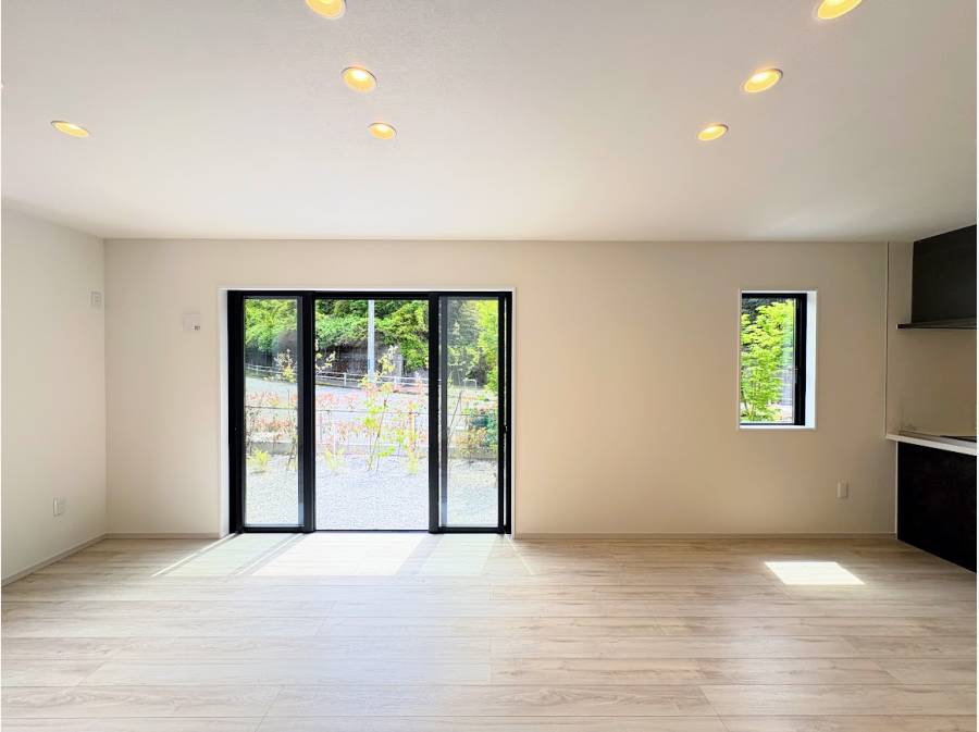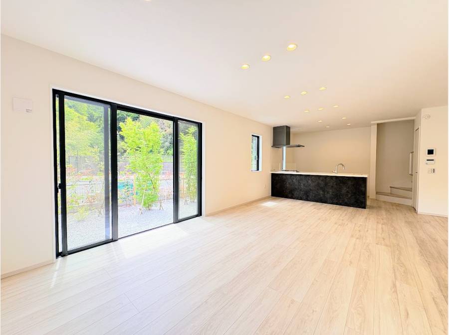最大の魅力は、LDKから眺める鮮やかな緑の借景。リビングの延長のように広がる大きなバルコニーと、開放感あふれるお庭は、四季の移ろいを肌で感じる特等席です。