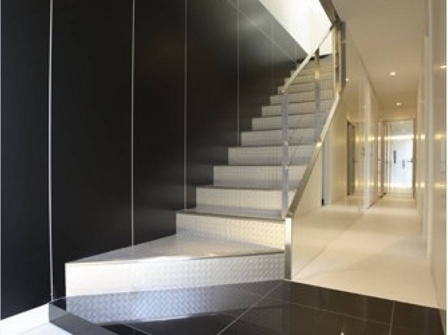 物件に到着するまでに、先に建物の背面をご覧頂けます。背面から、目立っており、デザイン性が高く美しい建築物だと感じました。タイル仕上げで、クール&スタイリッシュな室内。内覧については、ご予約が必要な物件です。お気軽にお問い合わせください!
