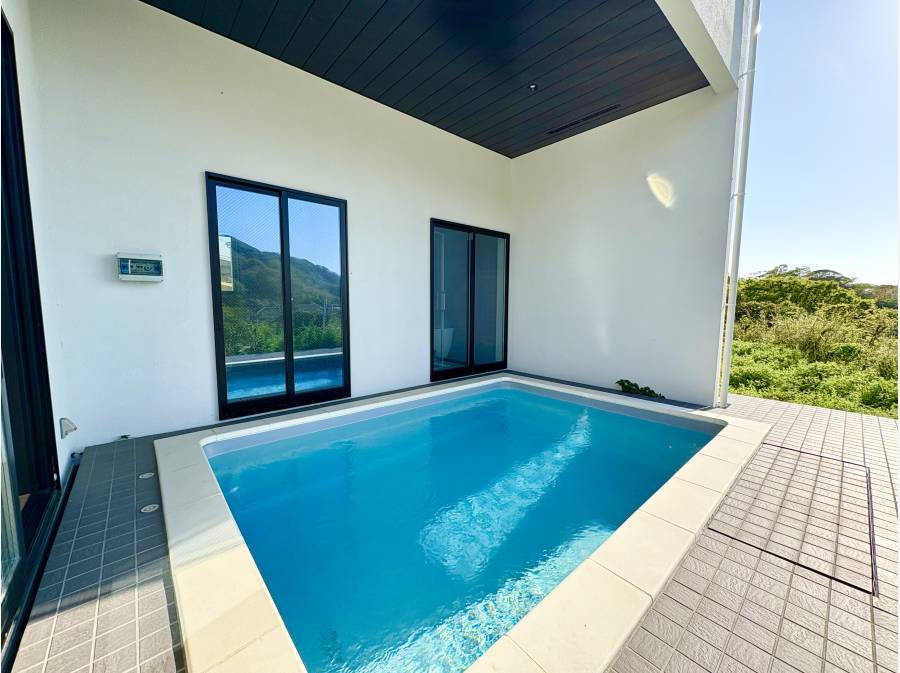 屋外にはプールがあり、非日常を感じるプライベートリゾートを堪能できます。2LDKの間取りは、居住用はもちろん、セカンドハウスや別荘にも適した設計です。
