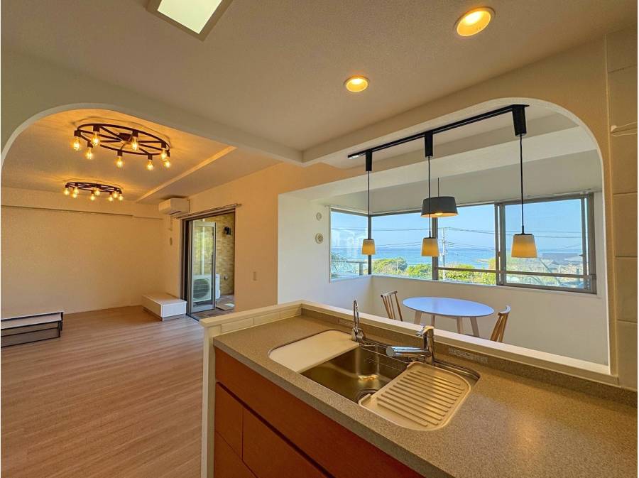 キラキラ光る海景色を望む専用駐車場付きマンション。