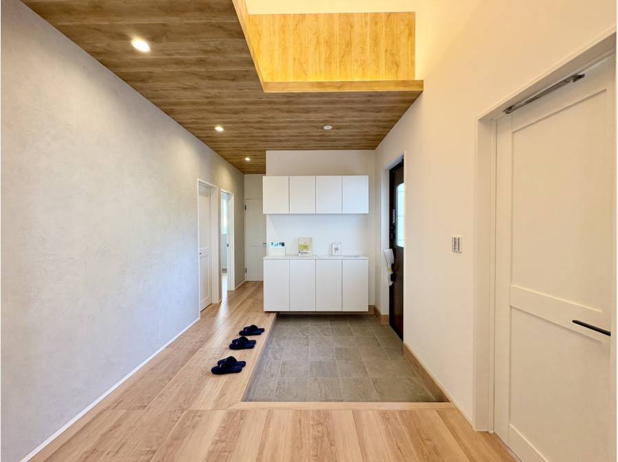 玄関は折り上げ天井で、明るく広がりのある空間がお出迎えします