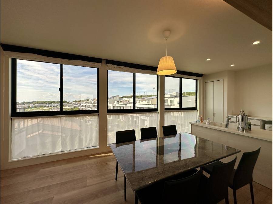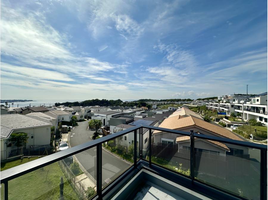 2階に配置された大型のバルコニーからは海、富士山、また、綺麗に整然された街並みを望む贅沢なロケーションをご覧いただけます