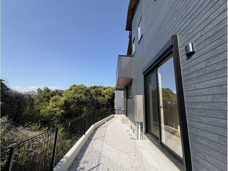 リビングから海が見えるだけではなく、バルコニーからの眺望も良好です!庭でBBQをすることもできます!遮るものがない為日当たりも良く風も通ります!駐車場も広く並列で2台停められます!駅まで徒歩11分