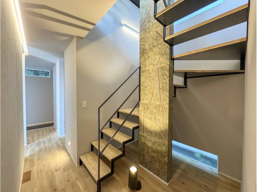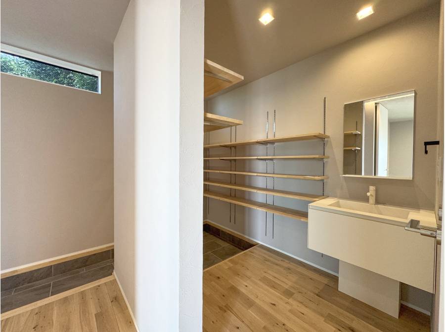 室内の床は無垢材、壁は珪藻土仕上げとなっております。