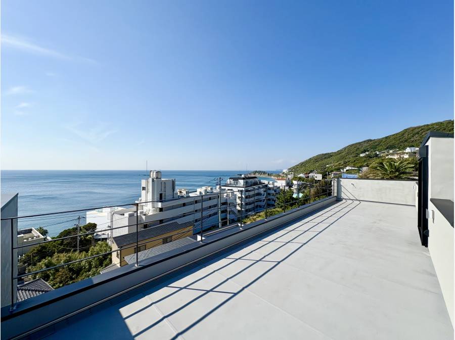 広々としたLDKに加え、ルーフバルコニーでは潮風を感じながら景色を堪能できます。夕暮れ時には沈む夕日を眺めながらBBQを楽しみ、夜には星空を眺めることも可能です。