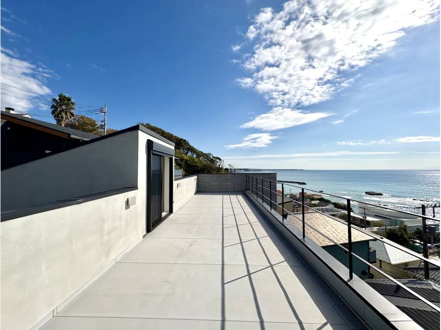 遮るもののないルーフバルコニーから望む、大パノラマビューは湘南の海、江ノ島、そして雄大な富士山までを一望できる。まさに特等席です。